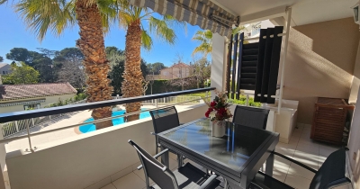 1st floor, South /West with pool views, this apartment is composed an entrance leading to living room (sofa bed 2 people 140 x190) with a kitchenette (3 burners induction hob, oven, microwave, fridge /freezer, [...]