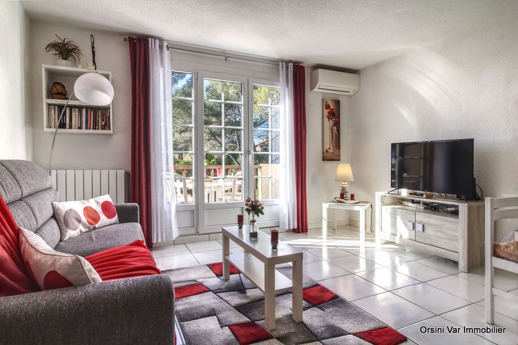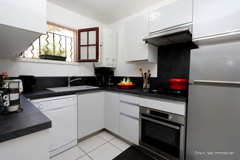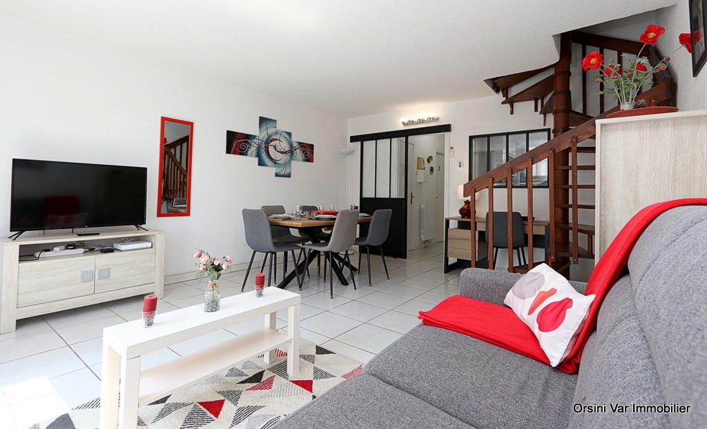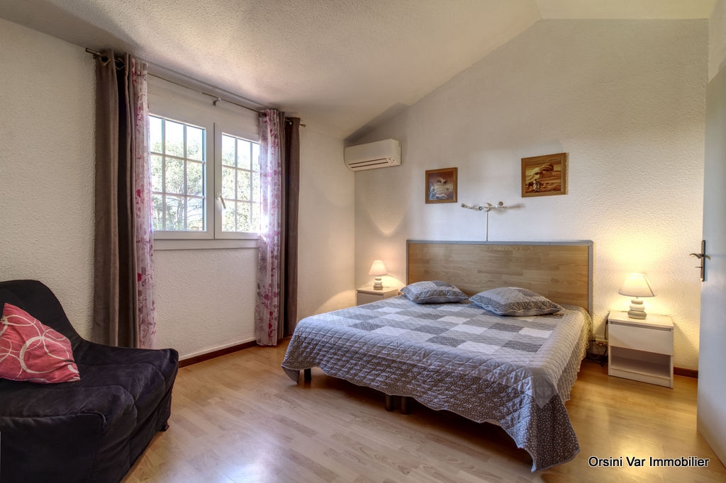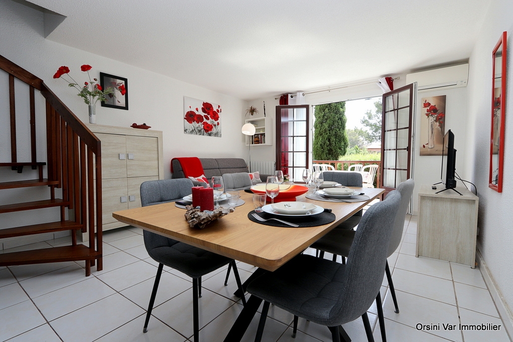 Al primo piano, esposizione Ovest, questo bilocale in duplex è composto da un grande soggiorno (divano letto 160x190), da una cucina independente (3 fornelli a gas, forno elettrico, microonde, frigo/congelatore, lavatrice, lavastoviglie) di un WC independente . Al piano superiore, una grande camera con 2 letti singoli (90x200) + divano letto singolo e un bagno con doccia e WC. Il soggiorno dà accesso ad un terrazzo con mobili da giardino. TV, WIFI, Aria condizionata, Parcheggio, Piscina.